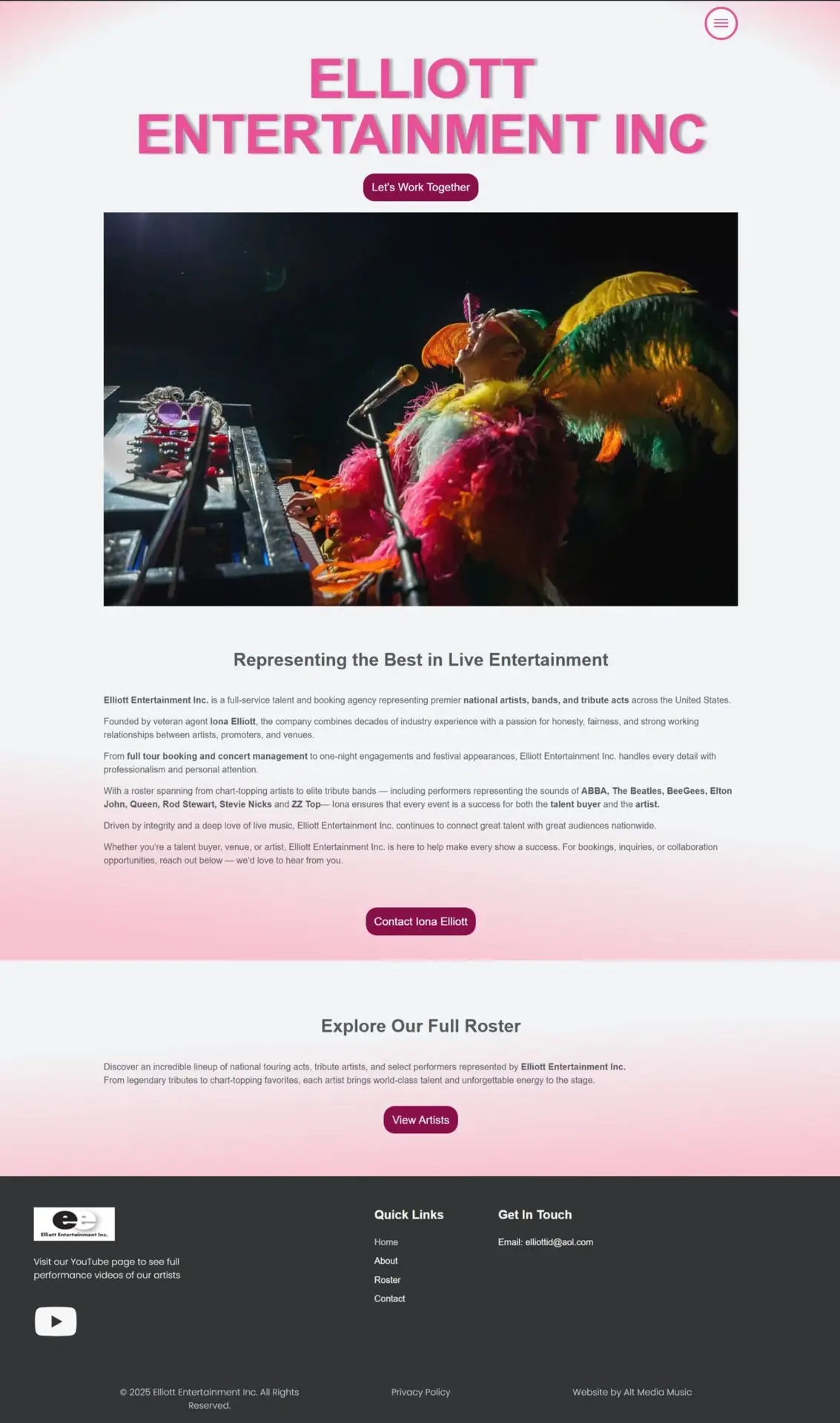 With its streamlined navigation, optimized SEO, and immersive presentation of over 100 performers, the site now stands as a high-impact showcase for Iona’s artists and a trusted resource for promoters nationwide.